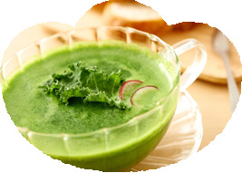 フリルのように見えるケールの葉と、具だくさんの野菜をコトコト煮込んだ、カラダ温まる一皿。