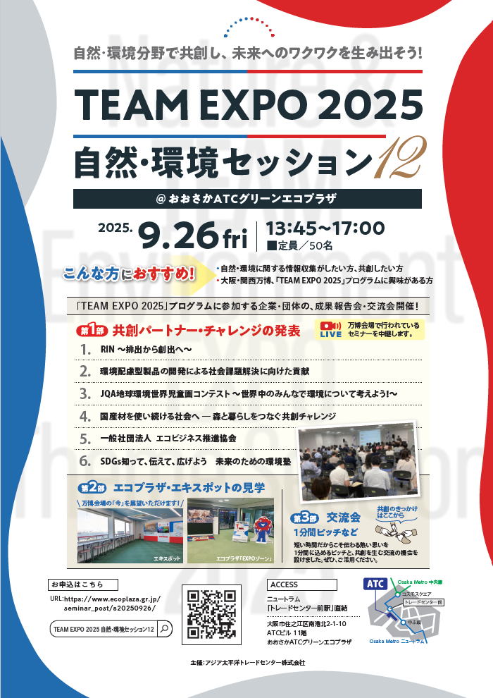 2025.09.25 プラスチック 【大阪・関西万博 共創チャレンジ】TEAM EXPO 2025 自然・環境セッションに登壇のお知らせ