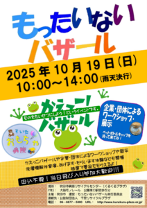 2025.11.04 お知らせプラスチック 吹田市 公益財団法人千里リサイクルプラザ主催「第3回 もったいないバザール」にてペットボトルキャップ回収とワークショップを実施