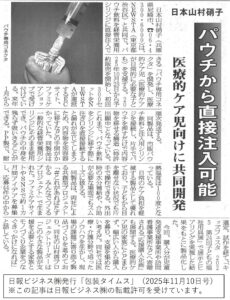2025.11.25 お知らせプラスチック 【新聞掲載のお知らせ】医療的ケア児向け新製品「パウチ専用コネクタ」について「包装タイムス(2025年11月10日号)」に掲載されました
